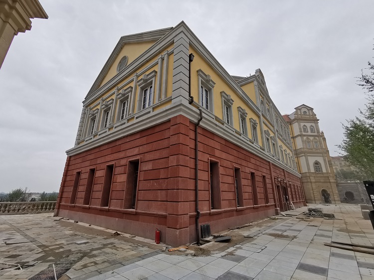 米黃砂巖平板3cm厚約15000平方米,5-25cm厚異形線條約12000米,圓柱、方柱、花瓶柱約:1000根?