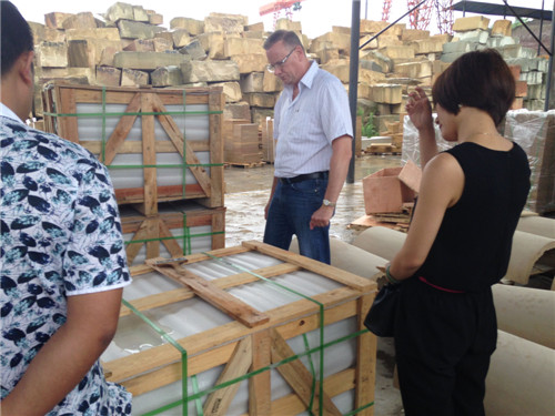 ??? 據(jù)悉,此次的米白砂巖材料用于比爾蓋茨鄰居的別墅外墻裝飾,有亞光面、噴砂面規(guī)格板、異形板,還有線條等產(chǎn)品,總共數(shù)量11個(gè)柜。合同金額為186萬,實(shí)際成交額應(yīng)會(huì)遠(yuǎn)遠(yuǎn)大于合同金額。澳大利亞客戶對(duì)此極其重視,從去年開始就與我們公司取得聯(lián)系,并對(duì)我工廠去年提供的樣品質(zhì)量和工藝表示滿意和贊賞。此次專程前往工廠就是為接下來訂單的細(xì)節(jié),如特殊邊線型,邊加工、包裝、防護(hù)、付款方式、交貨順序、時(shí)間等方面進(jìn)行商討和確認(rèn),最終達(dá)成共識(shí)。