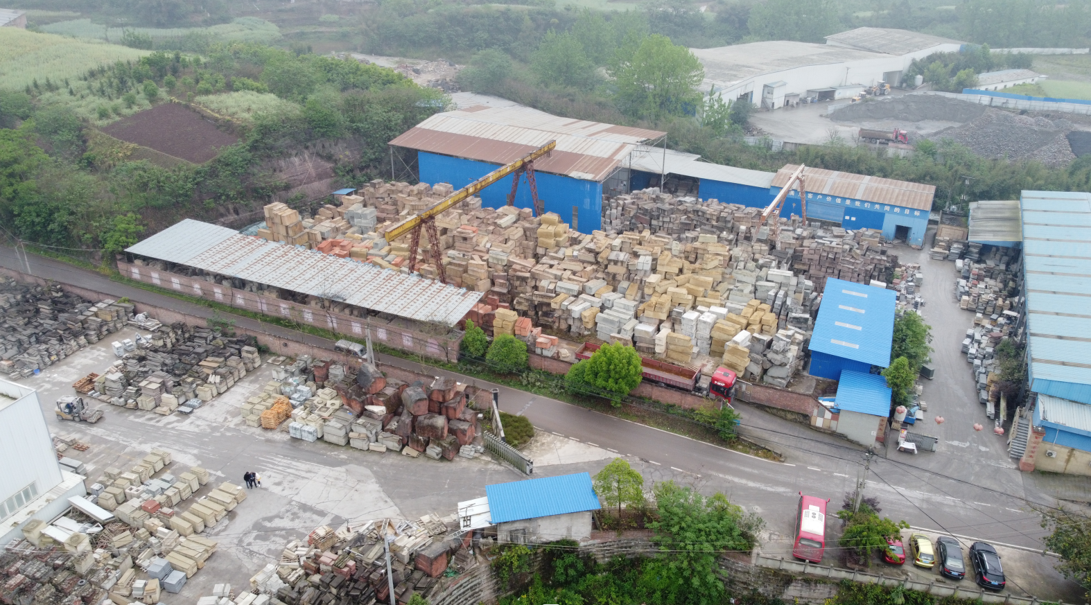 廠區(qū)面積超過過8000平米,常年荒料儲備近萬立方,半成品毛板數(shù)萬平方,