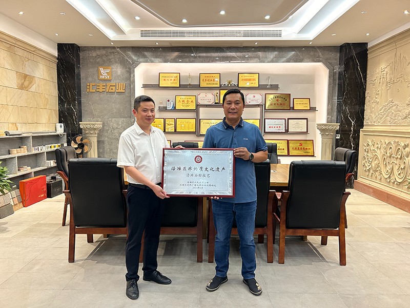 自古以來石雕技藝源遠流長,代代相傳。經(jīng)過多年的努力和傳承,終于在2024年6月5日沿灘鎮(zhèn)黨委書記張松書記為匯豐石業(yè)頒發(fā)了非物質(zhì)文化遺產(chǎn)沿灘石雕技藝的認定,這是對我們傳統(tǒng)工藝的極大肯定,也是對我們工匠精神的高度贊揚。