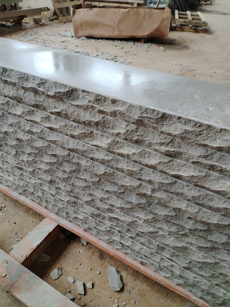 灰白色砂巖的自然面是一種很好的建筑裝飾材料。常見的自然界面是沖擊、劈裂、斷裂后形成的自然起伏面,又稱劈裂自然界面?;野咨皫r自然面的來源有兩種,一種是采礦過程中產(chǎn)生的,另一種是工廠加工而成的。