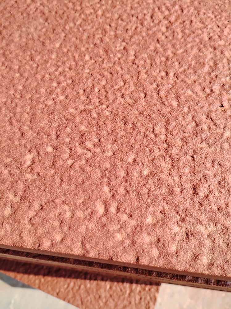 紅砂巖荔枝面加工完成后需要進(jìn)行防水處理。這是因?yàn)榧t砂巖吸水性強(qiáng),如果不做防水處理,長(zhǎng)時(shí)間使用容易出現(xiàn)變形等問題。此外,還會(huì)根據(jù)需要進(jìn)行化學(xué)處理,以增強(qiáng)其硬度和耐久性。