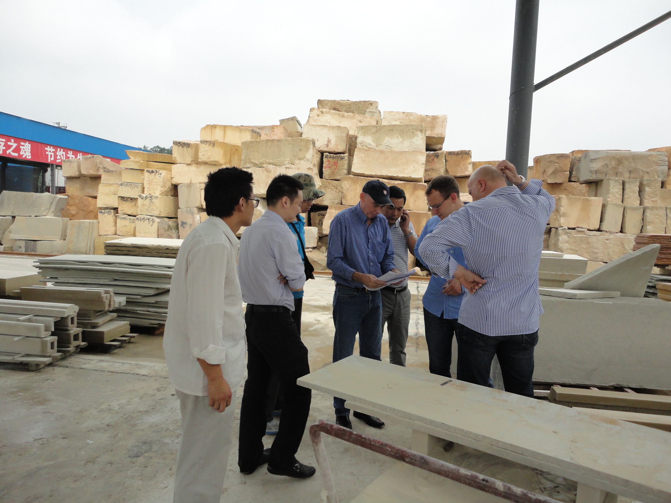 PS:圖片為外國客戶考察匯豐石業(yè)砂巖工廠現(xiàn)場實拍
