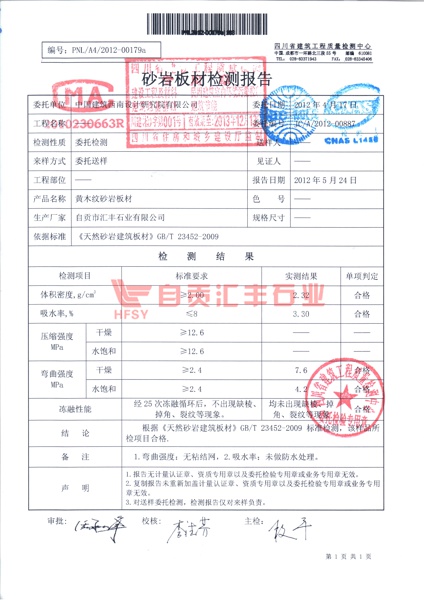 黃木紋砂巖檢測(cè)報(bào)告1