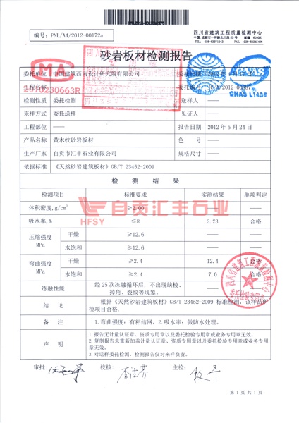 黃木紋砂巖檢測報告2