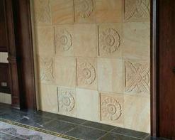 匯豐砂巖黃木紋拼花雕刻電視墻