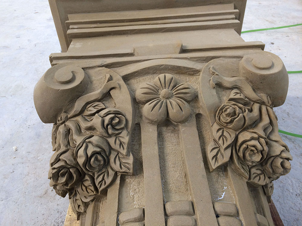 砂巖雕刻,其顆粒物細(xì)致,材質(zhì)硬度適中,適合手工雕刻,作為建筑裝飾設(shè)計(jì)用料。